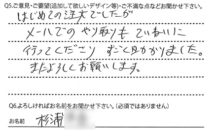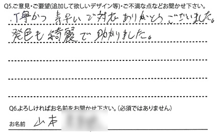 このたびは迅速かつ丁寧なご対応いただき心より感謝申し上げます。