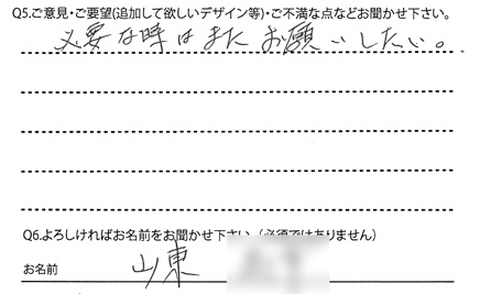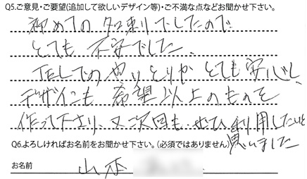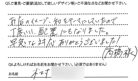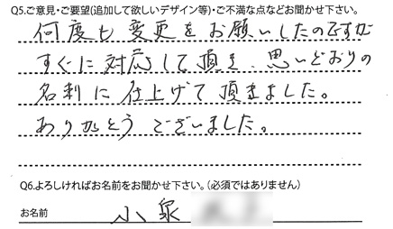 デザインの打ち合わせも、仕上がりも、紙質も予想以上で大変満足しております。