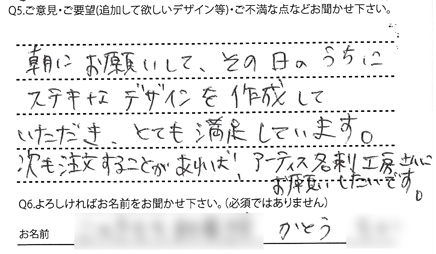 作って下さい、又次回も、ぜひ利用したいと思いました。アーティス名刺工房より