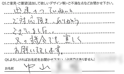 次回、修正点等、ございましたらお気軽にお申し付けください。