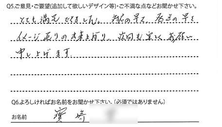 イメージ通りの出来上がり、次回も宜しくお願い