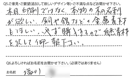お選びいただいていた用紙とデザインの相性がよくなかったため、ご変更いただきありがとうございました。
