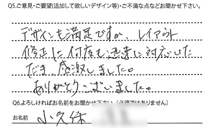 レスポンスも良く、仕上がりもイメージ通り、とても大変満足しています。